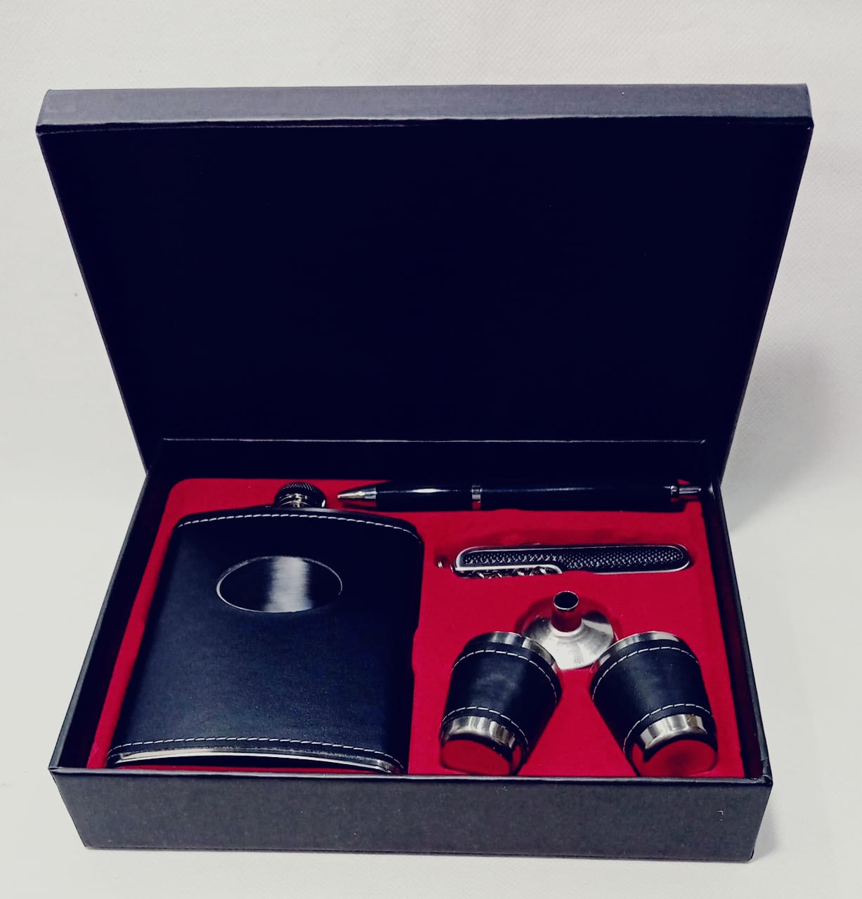 Set de Petaca con Vasos y Lapicera en Caja cantidad